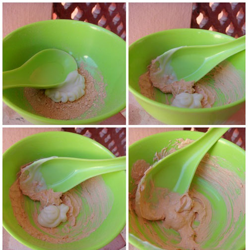 Шаг 3. Ложкой перемешайте до однородной массы. Если получается слишком густо – добавьте ещё немного лосьона. Сначала будет много комочков, но в принципе, пудра хорошо смешивается с любым кремом или эмульсией.