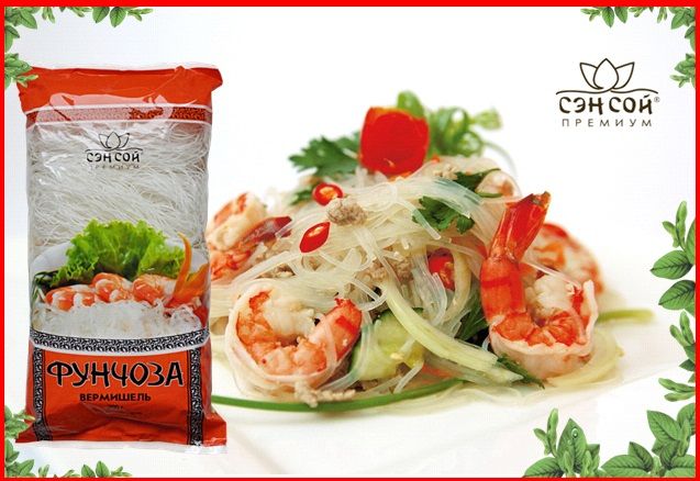 Фунчоза марки «Сэн Сой Премиум» (компания «СОСТРА») — является прекрасным примером качественного продукта, недаром она популярна в России и в других прилегающих странах. Фунчоза этой марки поставляется не только в ваши любимые магазины, но также и в ваши любимые азиатские кафе и суши-бары. Ее вам подают в виде вкусного азиатского блюда «ЧАПЧЕ» («Chapchae»), во вьетнамской кухне ее добавляют в фарш для жаренных блинчиков НЭМ и к спринг-роллам (spring-roll); могут подать в остром кокосовом супе с грибами шиитаке, шампиньонами, морепродуктами или в жгучем корейском салате.
