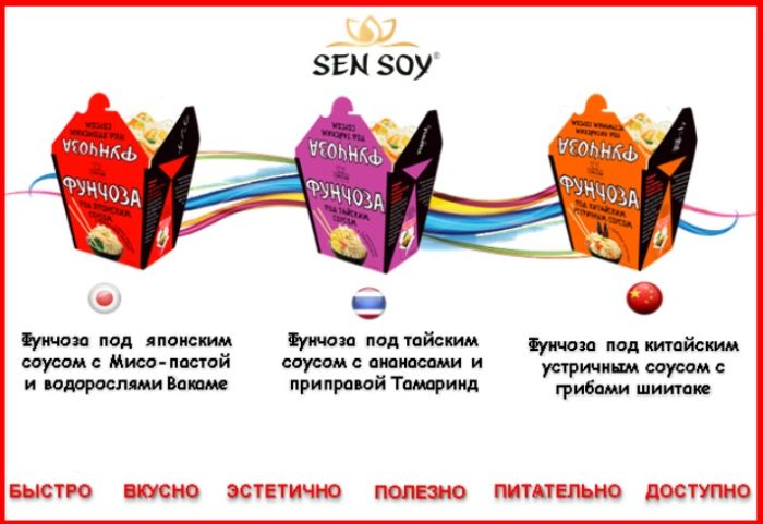 Фунчоза марки «Сэн Сой Премиум» — выбор российского потребителя, выбор шеф-поваров; «Сэн Сой Премиум» — марка, которой доверяют уже более 10 лет.