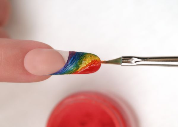Шаг 3. Конец свободного края оформляем красным цветом с помощью пигмента от CND Pigment – Bright Red.