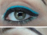 Шаг 4. Бирюзовым карандашом нанесите линию на верхнем веке выше черной подводки. Толщина бирюзовой линии такая же, как черная.