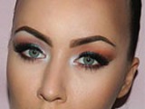 Шаг 5. Матовые коричневые тени – на нижнее веко. Можно смешать с оранжевыми тенями, чтобы они гармонировали с тем, что уже имеется на верхнем веке. Линию роста ресниц на нижнем веке (изнутри) следует подвести коричневым карандашом.