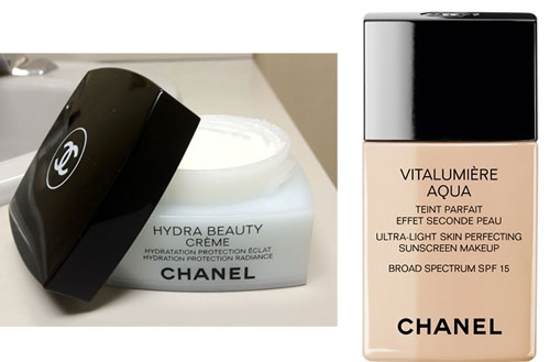 Визажист начала с подготовки лица. Свечения кожи удается добиться с помощью увлажняющего крема Chanel Hydra Beauty Crème Riche и тонального крема Chanel Vitalumière Aqua Ultra-Light Skin Perfecting Sunscreen Makeup Broad Spectrum SPF 15.