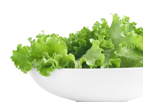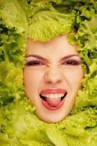 Измельчить листовой салат, взять 2 ст. ложки массы (излишки съесть), смешать со взбитым белком и нанести на 20 минут на лицо и шею. Смыть тёплой водой.