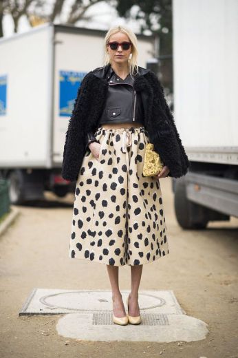 - Правило уравновешивать объем юбки с помощью облегающего верха – сохраняется и в случае с юбкой А-силуэта.