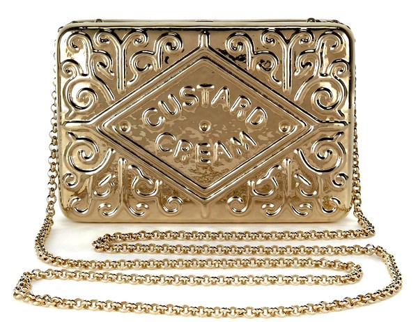 «Сумочный» дизайнер Аня Хиндмарч (Anya Hindmarch) всегда удивляет своими необыкновенными сумками и необычными решениями во время модных показов. Как лучший дизайнер, она удостоена престижной награды British Fashion Awards. Аня признается, что «зацикливается» на идее, если что-то потрясло ее воображение. Видимо, великолепный вкус заварного крема вдохновил британского дизайнера на создание сногсшибательной сумочки похожей на пирожное, покрытое золотой глазурью. Зато ни крошек, ни чувства вины у капризных сладкоежек не будет.