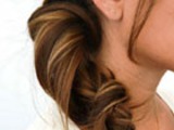 Шаг 6. Сбрызните волосы ещё раз текстурирующим спреем. Оставшийся хвост оборачивайте в не тугой жгут. Волосы будут лучше держаться, если работать с тонкими прядками: сначала каждую чуть скручивать, потом ею оборачивать хвост. На протяжении всего хвоста закрепляйте хвост невидимками, пряча их в массив волос. Заколки создают как будто остов хвоста, его основу, и не позволяют завиткам раскручиваться.
