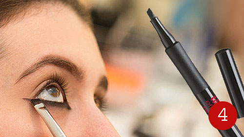 Шаг 4. Расширяем нижнюю подводку. Нарисуйте «крыло» линии, придерживаясь горизонтального направления в целом, а не угловой формы. Можно использовать гелевый лайнер или кремовый карандаш. Такой продукт как фломастер, потребует большей точности, учтите это, выбирая средство макияжа. Кисточка и тени предпочтительнее для новичков.