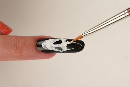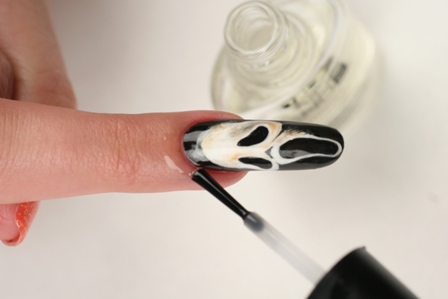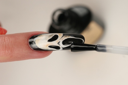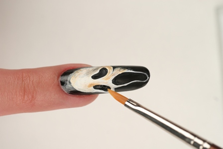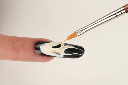 Дизайн «Триллер» - это несложный, но эффектный nail-арт, который обязательно понравится Вашим клиенткам. Вдохновением к его созданию стал герой фильма ужасов «Крик». Повторите рисунок с помощью мастер-класса, или используйте его как основу для создания собственных композиций.