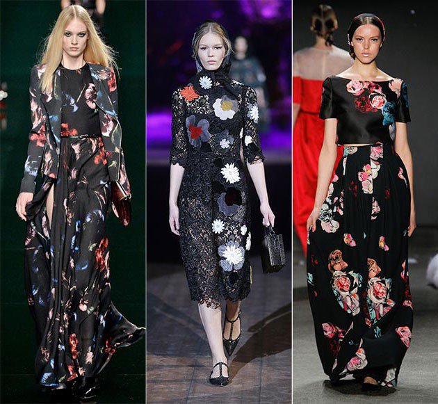 Черная ткань – прекрасная основа для создания ярких и запоминающихся мотивов. А яркие сочные розы и другие цветы – идеальное решение для создание контрастности в образе, и в то же время возможность обратиться к народным мотивам (вспомните хотя бы Павлопосадские платки). В наступающем сезоне черные платья с розами демонстрируют сразу несколько брендов, среди них Erin Fetherston, J.Crew, Elie Saab, Dolce&Gabbana, Honor. Кстати, по прогнозам, этот принт будет актуален и весной-летом будущего года.
