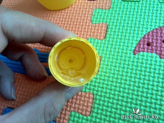 Детская шампунька представлена вот в таком ярком флаконе, ярко-жёлтого цвета, с улыбающимися зверьками.