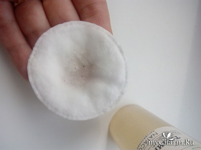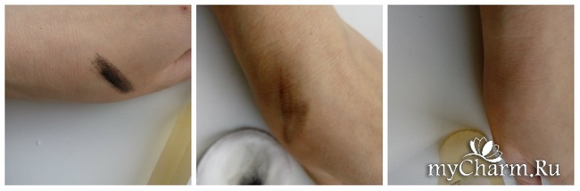 Сей продукт пришелся мне по нраву. Во-первых, он прекрасно тонизирует кожу и увлажняет ее, продлевая тем самым красоту, молодость и здоровье. Во-вторых, пригоден для удаления макияжа. Дабы доказать второе, приведу фотообразец работы тоника с водостойкой тушью. Я нанесла обильный слой туши на запястье, затем ватным диском, смоченным тоником, мягко провела по пятну. Большую часть один взмах диском устранил. Со второй попытки – от туши почти не осталось и следа. При этом не возникло раздражения и прочих дискомфортных явлений. Глаза тоник тоже не раздражает, проверено на собственном опыте. В общем, удаление любой косметики тонику по плечу.