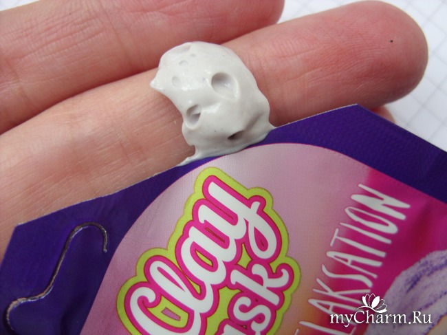О маске. Сам продукт обладает в меру густой кремообразной консистенцией, если не знать, что в составе глина, распознать сей аспект не удастся. У маски нежная текстура, она легко распределяется по коже равномерным слоем. Цвет бледно-фиолетовый, аромат скорее косметический, не могу распознать в нем указанные эфирные масла, поскольку не знакома ни с тем, ни с другим. Но лично меня аромат устраивает, и процесс использования маски комфортен.