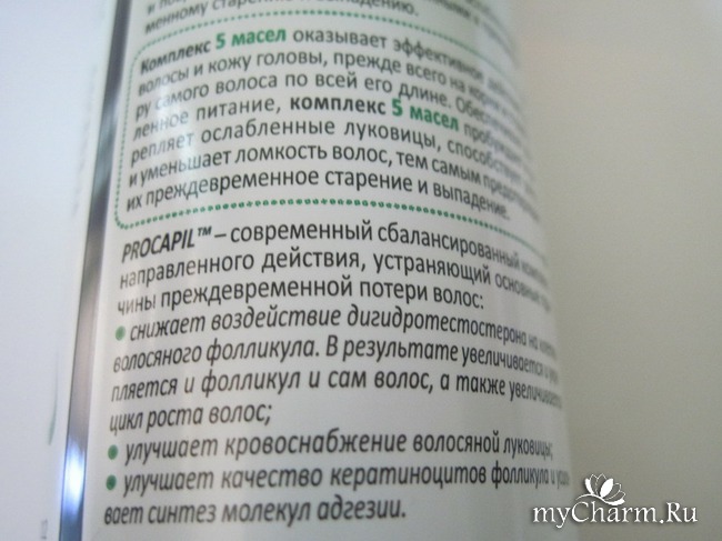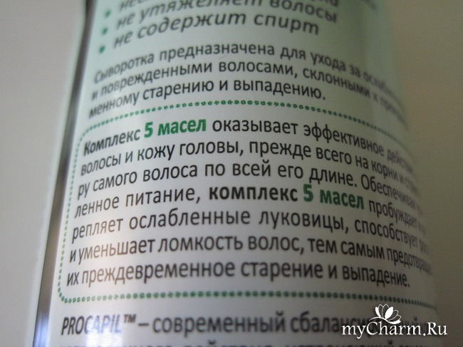Наконец, сыворотка содержит такой комплекс, как PROCAPIL, который борется с причинами, вызывающими выпадение волос. В частиности, укрепляет фолликулы, сами волосы, улучшает кровоснабжение волосяной луковицы.