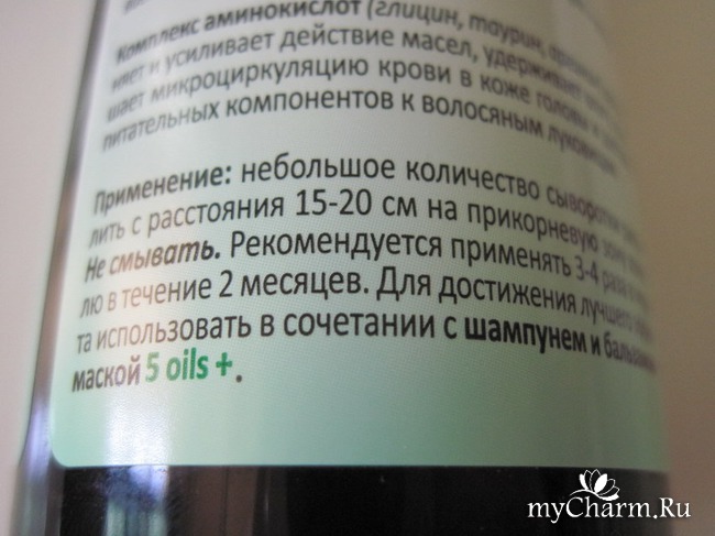 Признаться, фраза «5 масел» поначалу меня не только обрадовала, но и напугала. Я подумала, что сыворотка будет жирнить волосы. Однако ничего подобного. Про некоторые масла вы уже прочитали выше, что они, напротив, растворяют лишний жир. И по консистенции сыворотка ни разу не жирная. Так что волновалась я совершенно зря.
