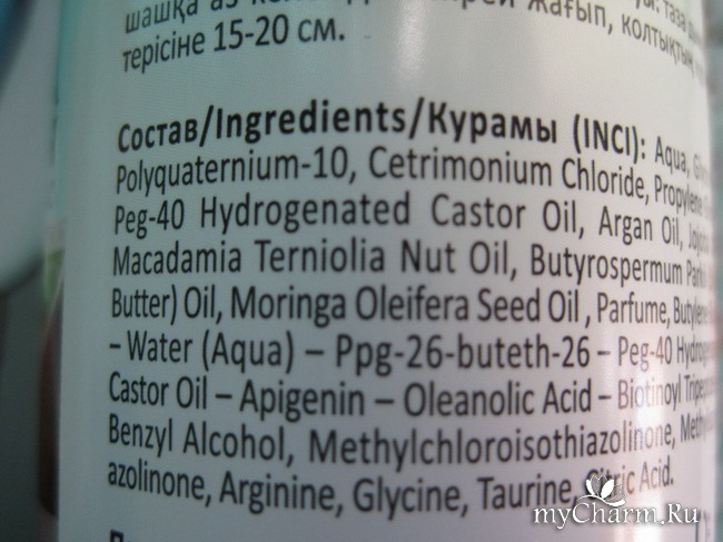 Производитель не напрасно поставил аргановое масло на первую строчку (и в списке ингредиентов оно уступает только касторовому, которое тут вообще не указано - наверное, бонусом идет). Аргановое масло – уникальный продукт, одно из самых востребованных средств в уходе за волосами во всем мире. На волосы масло арганы действует так: