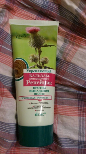 Недавно заметила, что после расчесывания на щетке остается волос больше, чем обычно, а после мытья в ванне замечаю сразу с десяток «потерь». Пришла пора позаботиться о шевелюре особым образом, а для этого приобрела комплекс средств по уходу за волосами. Сегодня хочется поделиться впечатлениями от использования укрепляющего бальзама-кондиционера с экстрактом репейника от марки «Витэкс».