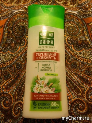 Однажды поняв, что действие шампуня многократно усиливается при использовании бальзама для волос, стала покупать их в паре. Вот и Бальзам для волос Умный №1 Укрепление и свежесть для жирных и кожи головы от Чистой линии был приобретён со своим «старшим братом» - шампунем.