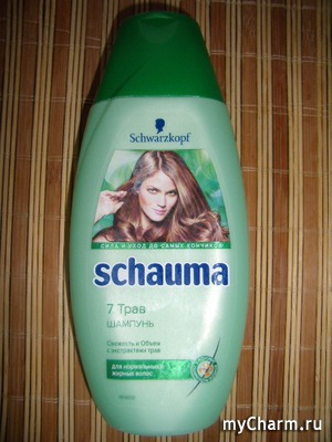 Современная истерия по поводу желания использовать средства на травах и максимально натуральные затронула и меня. Уж не знаю, так ли натурален шампунь «Шаума», но вот целых семь трав в составе – это безусловно интересно! Так размышляла я, стоя у прилавка с косметикой. И, конечно, шампунь на травах очень скоро оказался в моей корзине.