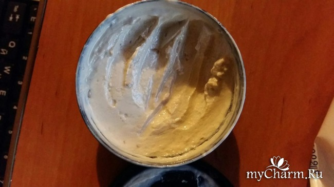 Консистенция. Очень и очень густая. Не течет. Отлично распределяется. Немного клейкая. Цвет молочно-бежевый. В общем напоминает тесто. С маленькими вкраплениями... чеснока (помоему). Но не пугайтесь (только если вы не вампир).