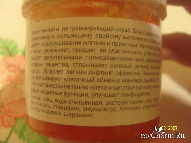 Состав Томатного скраба. Еще раз повторюсь, продукция «Велинии» очень нравится мне своими объемами (думаю, не только меня!) и своим натуральным составом. Вот и в этот раз Томатный скраб не подвел. Среди компонентов, входящих в его состав, есть: