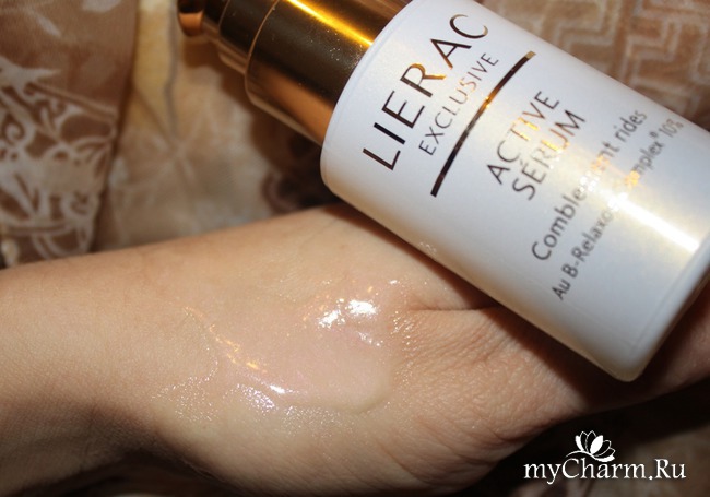 Если применять только сыворотку Lierac, то результата никакого не достигнешь. В принципе это объяснимо- она является лишь проводником того средства, которое наносишь следом. Но могу отметить от себя, что спустя пару недель применения перламутровый состав разонравился. Вроде бы и текстура легкая и на вид средство красивое, но удовольствия от использования не было. Если сформулировать словами, то сыворотка кажется «сопливой», т. е. не начинается сразу «работать» с кожей, а еще какое-то время как бы раздумывая блестит на лице. Какую все-таки роль должны играть перламутровые частицы я не поняла. Эффекта скрытия морщинок не заметила. Скорее пришла к мысли, что они служат только «украшением» средства. Кстати, пока сыворотка до конца не впитается, перламутровый налет сохраняется на коже.