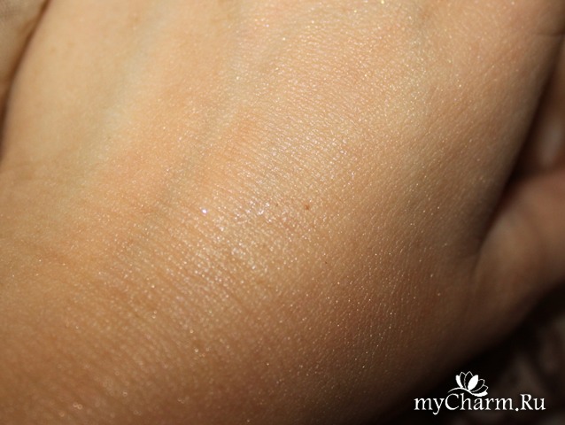 Наличие перламутровых частиц видно невооруженным взглядом. Сыворотка жидкая молочно-сливочного цвета с эффектом мерцания. Смотрится это красиво, как бы вновь и вновь напоминая, что это люксовое средство.