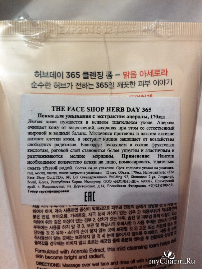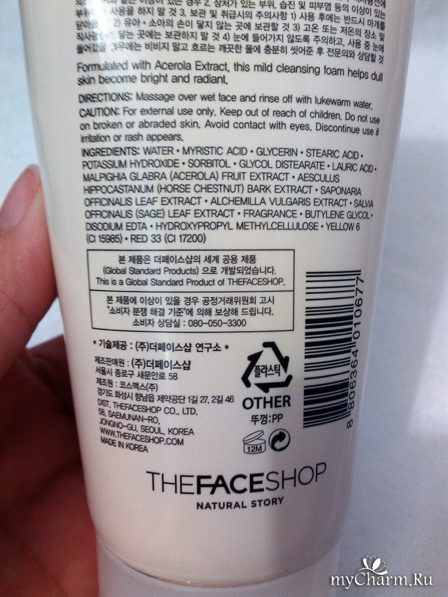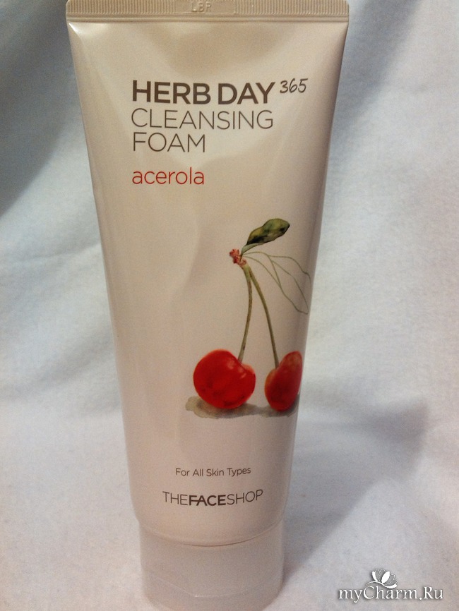 Ну, а теперь перейдем к обзору моего любимчика из этого магазина. Знакомьтесь, перед вами пенка для умывания с экстрактом ацеролы The Face Shop Herb Day 365.