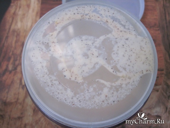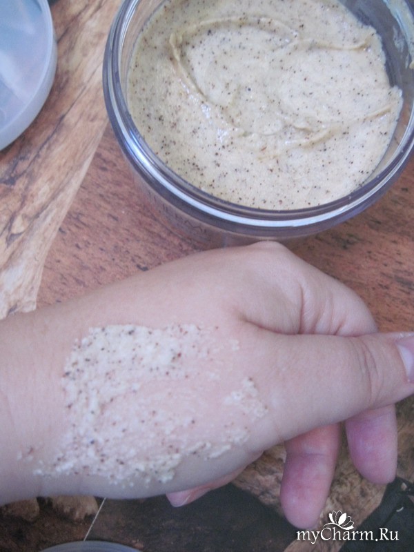 Запах масла-скраба, хотя и насыщенный, но не приторный. Никакой «химии» в нем не слышно. Целиком натуральный, естественный, несильный запах.