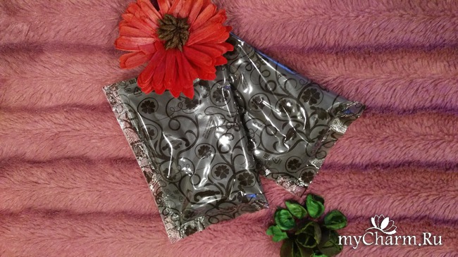 Открыв упаковку, мы найдем два пакетика с сухим средством темного цвета, что впрочем ожидаемо, если учесть название маски.