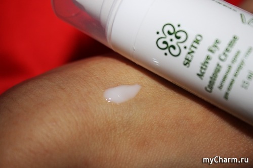 Вообще у SENTIO есть легкий крем для кожи вокруг глаз. В случае, если он не показывает эффективность, предлагается приобрести данный вариант, который рассчитан на сухую и увядающую кожу. Т. е., если вы видите, что в спокойном состоянии у глаз заметны «гусиные лапки», то смело пользуемся. Я, конечно же, нашла у себя все изъяны. На то я и женщина!