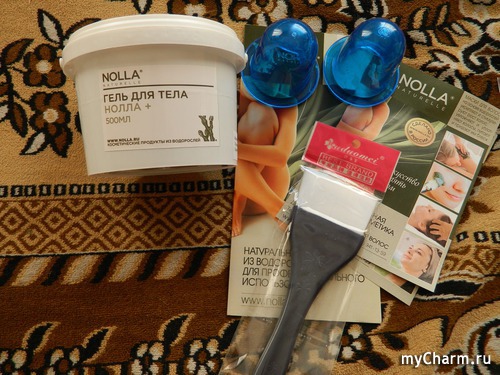 Одним из таких «помощников» на пути к стройности стал для меня гель для тела Nolla + в «компании» с вакуумными баночками и кистью для нанесения. Чудо-наборчик, да и только!