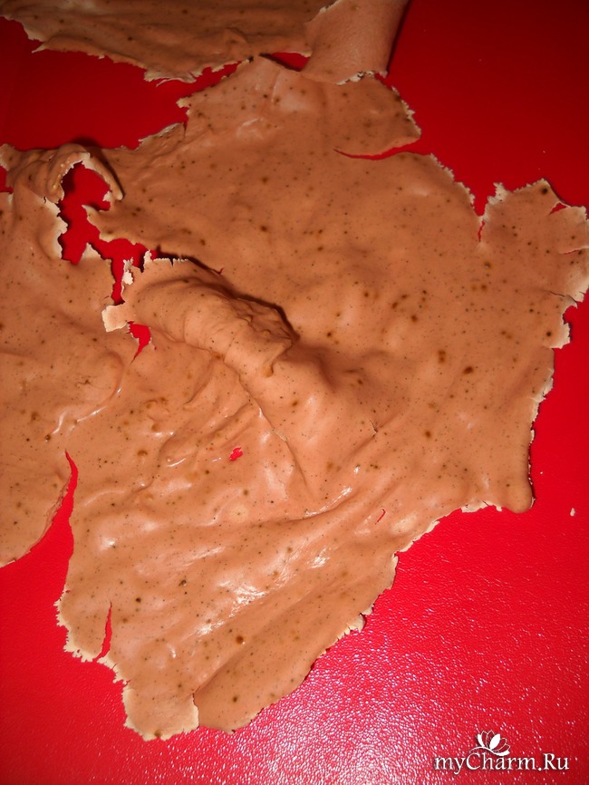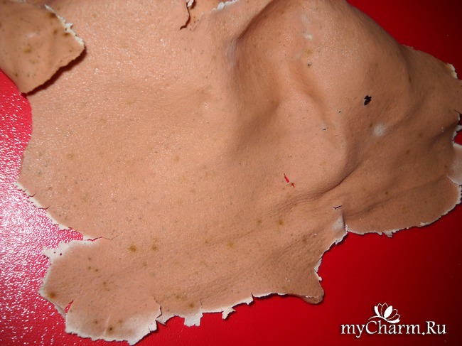 А вот эта, более гладкая сторона, прилегала непосредственно к коже. Кстати, подсохшие краешки практически не пришлось размачивать – достаточно было задействовать активную мимику, и масочка стала отходить от кожи сама!