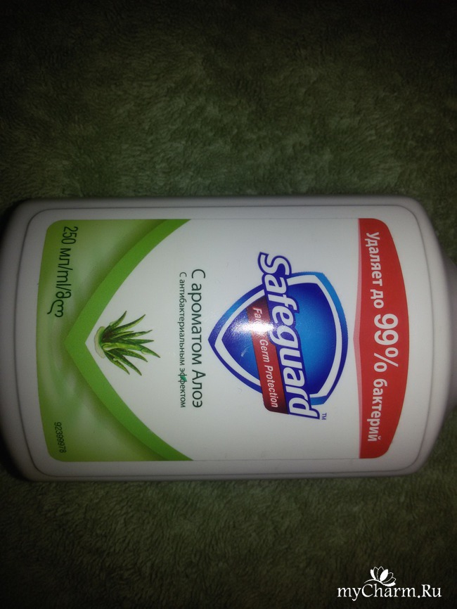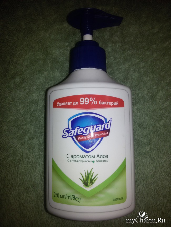 Так вышло и с нами. Когда мой сынок заболел ангиной, я отправилась с рецептом в аптеку, где и присмотрела заодно антибактериальное мыло Safeguard с экстрактом алоэ-вера. Оно хорошо знакомо многим, и мне в том числе. Только чаще я его встречала и покупала в твердом виде.