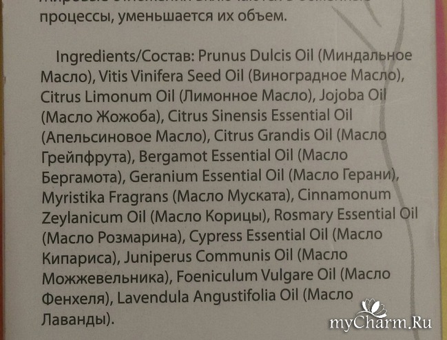 Я внимательно прочитала, состав отличный для антицеллюлита, скорее всего ты свой целлюлит давно разбила, поэтому тебе кажется малоэффективным, если ты делала в одну зону антицеллюлитный массаж с эффектом обертывания и с баночкой, то после 10-15 раз надо прекращать эту процедуру. Если сильный целлюлит, то продолжай через три месяца. Вот так, иначе можешь навредить себя.