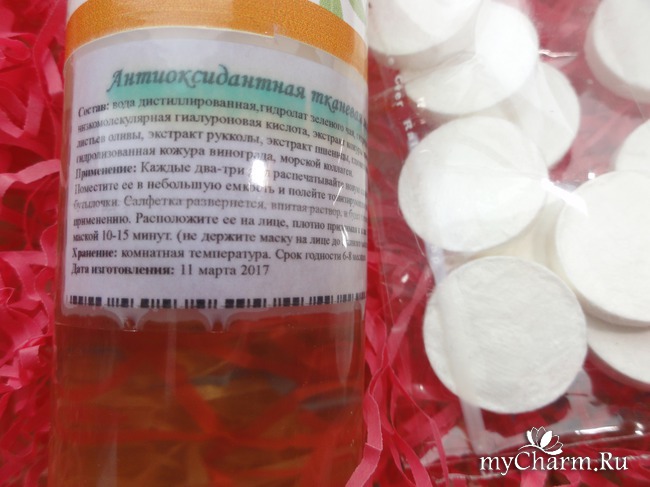 И это не просто одноразовая маска, это целый флакон со средством, к нему прилагаются довольно много тканевых масок-таблеток, которые можно смачивать средством, когда захочется применить для кожи антиоксидантную защиту.
