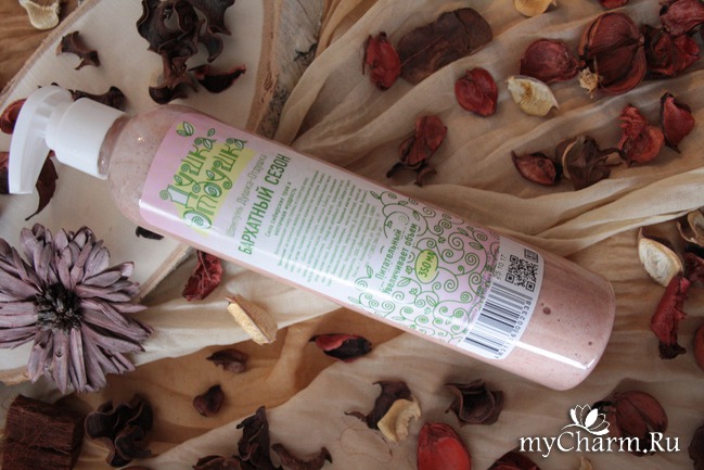В отличиях шампуня от крем-шампуня разобрались, давайте же перейдем к крем-шампуню «Бархатный сезон». «Бархатный сезон» является антистресс серией. И я с этим точно соглашусь! Какое ароматное, теплое и уютное название. Процесс мытья волос с этим крем-шампунем – настоящее расслабление и удовольствие. Аромат окутывает своим теплом и сладостью. Он очень теплый, приятный, согревающий. Пахнет абрикосом, орехами и пряностями. Так и хочется его съесть!
