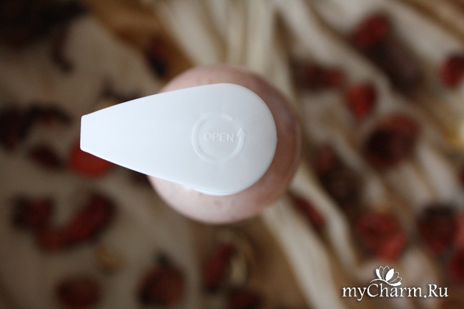 Объем флакона 350 мл. Выполнен он из прозрачного пластика, благодаря этому можно следить за расходом шампуня. Также имеется очень удобный помповый дозатор.