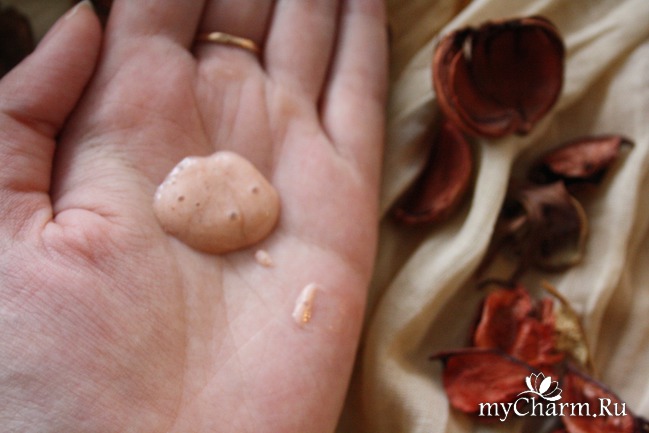 Консистенция оправдывает название «крем-шампунь» - это настоящий легкий крем не густой, но и не жидкий. Крем-шампунь по цвету настоящая осень: теплый, солнечный, смесь опавшей листвы, спелых красных яблок и сочных абрикосов. Также можно заметить маленькие темные частички. Я думаю, что это косточки абрикоса, которые слегка могут поскрабировать кожу головы.