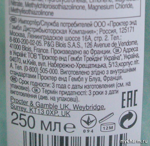 Ниже - срок годности (3 года), производство (Франция) и объем (250 мл.).