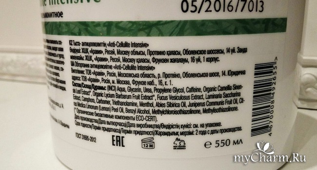 В данном антицеллюлитном средстве все компоненты подобраны очень тщательно и собраны именно в том количестве, в котором могут нанести максимальный удар проблемным областям женского тела. И не важно, стоит оно на первом или последнем месте в составе, важно, что все четко собрано в одно целое профессионалами в своем деле. И я им доверяю.