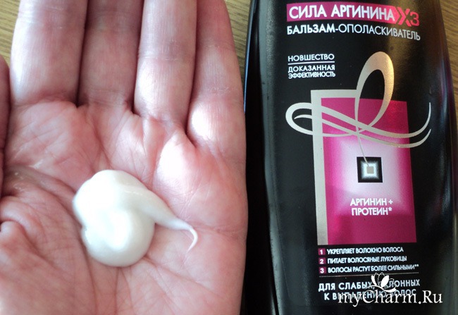 Зачем же это вещество волосам? Аргинин способен проникать в структуру волос и закрепляться на участках, которые сильно повреждены, восполнять их. Таким образом, структура волос улучшается, они становятся более здоровыми, крепкими. То есть, получается, что это вещество, главным образом, необходимо поврежденным волосам: окрашенным, секущимся, обработанным химической завивкой и пр. Но на упаковке сказано совсем о другом: «для слабых, склонных к выпадению волос». Насчет «слабых» волос я согласна – им действительно нужны аминоксилоты и белки. А при выпадении структуру волос улучшать вроде не нужно – следует действовать исключительно на корни волос. Но и здесь имеется разумный ответ. Производитель пишет на сайте о том, что аргинин проникает и в волосяной фолликул. И увеличивая микроциркуляцию в нем, способствует более ускоренному росту волос.