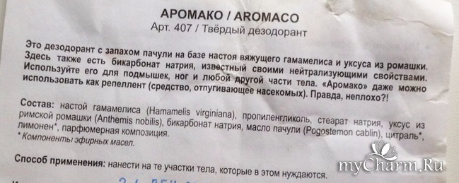 Зимой этого года я в очередной раз начиталась о вреде солей алюминия, которые содержатся пожалуй во всех дезодорантах масс-маркета. И тогда уже твердо решила с ними "завязать" и перейти на натуральные варианты. Так у меня появился известный "кристалл" и "жидкий" шариковый Эколаб. Варианты неплохие, но я ждала чего-то большего, а потому поиски продолжались. И вот, однажды на Чарме я наткнулась на пост Марины, которая хвалила именно этот Аромако, рассказывая о том, что даже жаркий Египет ему не помеха! Естественно, я сразу стала его очень-очень хотеть!