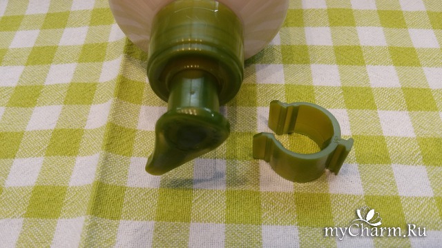 Чтобы дозатор заработал, нужно этот зажим снять и тогда ароматное молочко при нажатии на дозатор окажется у вас в руке.