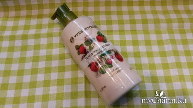 Я сразу же представляю ее чудесный аромат и детство. Родилась я и прожила до 25 лет в селе, а рядом был замечательный лес, куда мы ходили собирать землянику. Здесь, в Норильске, земляника к сожалению не растет и кушаем земляничку только, когда прилетаем летом в отпуск, в свое родное село, запасаемся витаминчиками. Жаль что она растет ни все лето, очень быстро заканчивается сезон лесной земляники. Много тысяч лет земляника для людей ни только вкусное и ароматное лакомство, но так же ее использовали в качестве лекарственного средства. В землянике очень много витаминов, она содержит много кальция, фолиевой кислоты, а так же витамин Е и железо. Но на землянику может быть аллергия, поэтому маленьким детям ее нужно давать с осторожностью. Я обожаю есть землянику с молоком, прям представила этот вкус, как хочется уже лета. А какое ароматное и вкусное варенье из земляники. Что-то я увлеклась рассказом о землянике, а все потому, что сегодняшний мой обзор как раз о лесной землянике. Но ни о самой ягодке, а о молочке для тела от Yves Rocher "Лесная земляника". С косметикой этого бренда я знакома давно, но сама практически ничего не покупала, как-то так получалось, что постоянно что-то от Yves Rocher я получала в подарок. А ни так давно, я зарегистрировалась на официальном сайте интернет-магазина Yves Rocher и уже делала там пару заказиков, о которых я рассказывала в своем дневнике. И в одном из заказов и было это молочко для тела. Сейчас на сайте Yves Rocher молочко для тела "Лесная земляника" стоит 349 рублей.