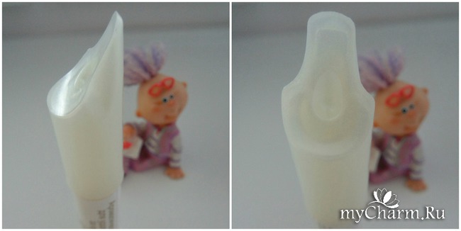 Открываем упаковочку и начинаем знакомиться с самим карандашом. Первое, что бросается в глаза, это интересная форма колпачка. Признаться честно, в этом деле я оказалась не дальновидной, так как не пользовалась специально отведёнными средствами для смягчения кутикулы, и распознала его задумку, лишь когда стала делать фото для обзора :D Оказалось, что всё продумано и форма сделана, не для "оригинальности", как "кое -кто" подумал изначально, а для того, чтобы можно было после смягчения кутикулы самим карандашиком, потом, уже с помощью крышечки, её ещё и пододвинуть) Так, что карандашик оказался 2 в 1