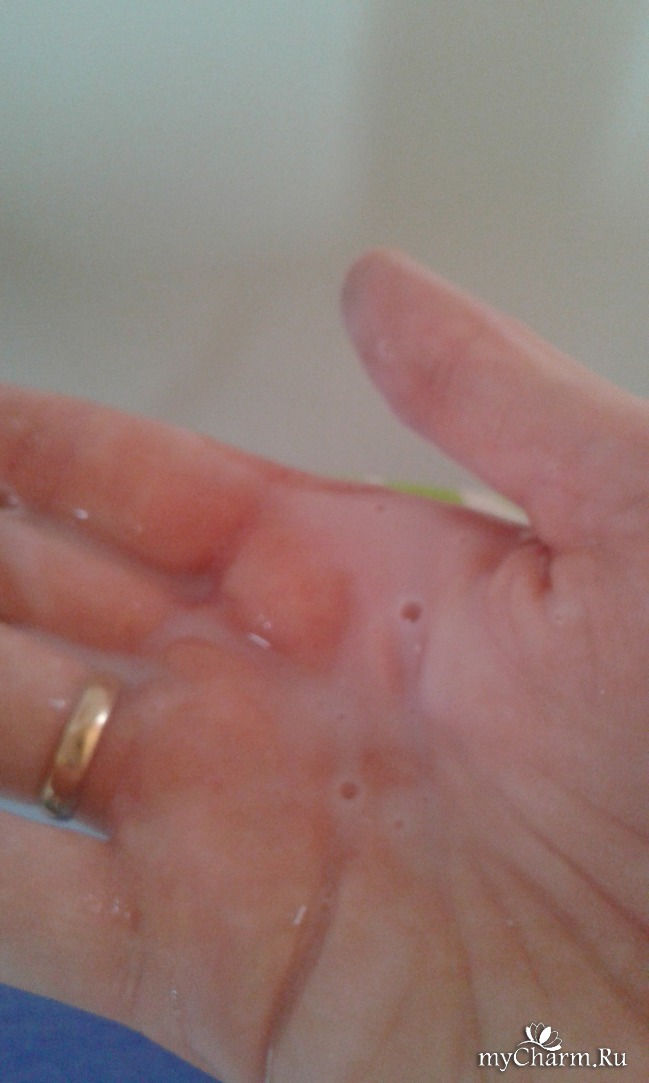 По консистенции гель немного жидковат, если нанести его на руку, он начнет немного растекаться, даже если количество будет небольшим. А что касается применения во время мытья...
