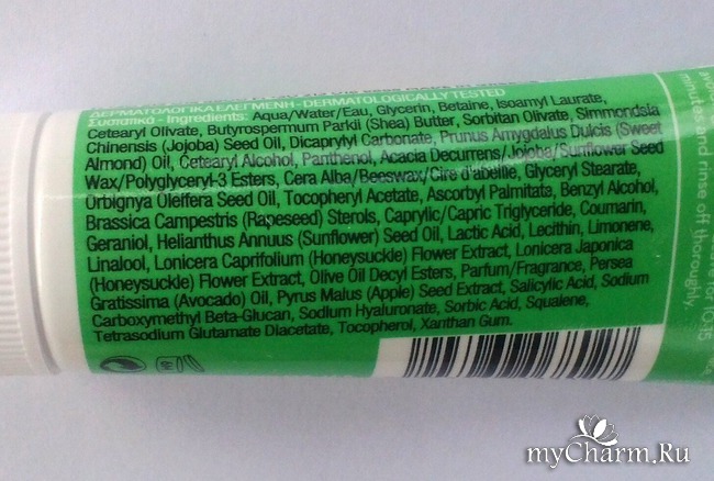 Сначала она кажется белой и густой, когда выходит из тюбика на ладонь. Но затем прекрасно наносится на кожу, хорошо распределяется и впитывается, белизны на лице нет. Аромат у неё приятный, сладковатый и нежный, он не отталкивает, с ним приятно. Держу маску час- полтора, за это время успеваю сделать множество дел по дому, она мне не мешает, не течёт и не тянет кожу. Я её ощущаю, конечно же, но ощущения приятные. Кожа успокоена, увлажнена. После умывания водой остаётся чувство гладкости и нежности на коже.