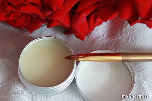 Бальзам находится в круглой алюминиевой баночке с откручивающейся крышечкой очень интересного и лаконичного дизайна. Кому-то такая упаковка может показаться неудобной, но мне, если говорить честно и откровенно, такой формат оказался очень по душе, так как многолетнее использование средств для губ в виде стиков порядком надоело. Я противник залезать пальцами в баночку, а потом этим же пальцем наносить бальзам на губы, поэтому сразу же в первое применение выделила специальную небольшую кисточку для губ и пользуюсь только ею.
