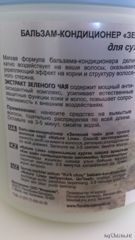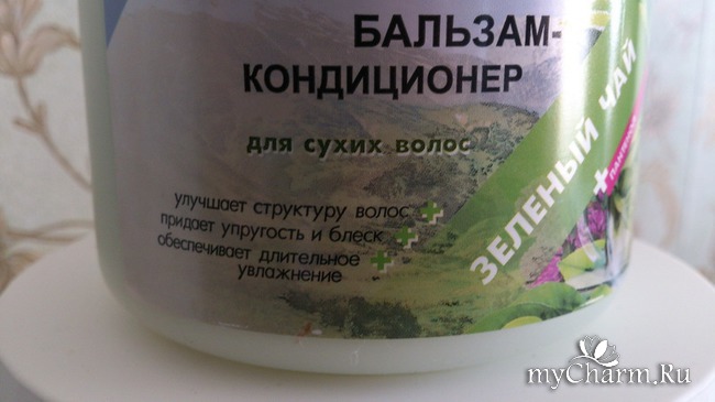 Второй плюс – аромат! Такой же нежный, весенний, почему-то цветочный (как мне показалось), хотя называется бальзам «Зеленый чай». Но, забегая вперед, скажу, что аромат еще приятнее звучит на волосах – когда выхожу из ванной, он будто бы обволакивает и еще некоторое время (примерно пока волосы не высохнут) чувствуется очень явно. Пахнет как будто бы цветочной пыльцой.